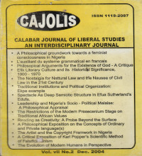 CAJOLIS, Calabar Journal of Liberal Studies, Vol. VII, No. 2